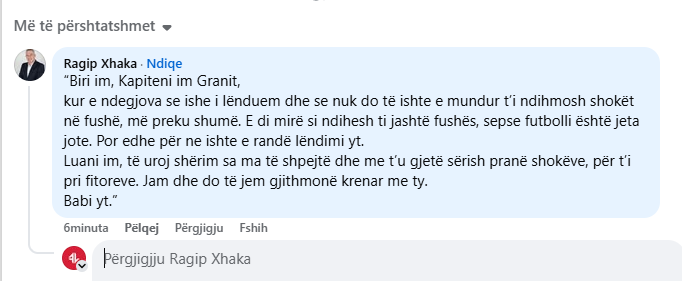 Ragip Xhaka u shpreh i emocionuar duke thënë se i uron shërim të shpejt.