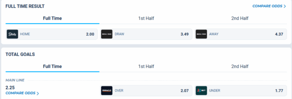 Shanset për një barazim pas 90 minutash janë 3.49, ndërsa një fitore për Kosovën shpërblehet me mundësi kuotimi prej 4.37.