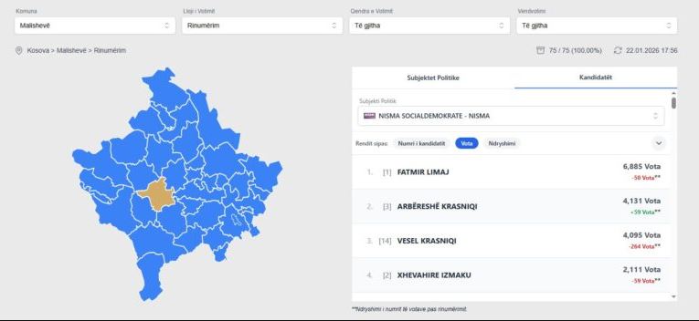 Pas këtij procesi, kryetarit të Nismës Socialdemokrate, Fatmir Limajt, i janë hequr 50 vota. Limaj, i cili pretendonte të kalonte pragun zgjedhor, nuk arriti të fitojë as në vendlindjen e tij.